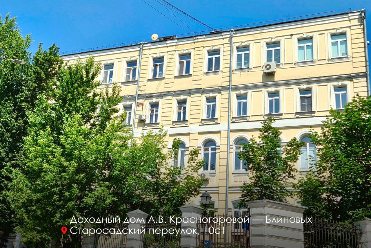 Еще одно сооружение — жилой дом, стоящий на углу Старосадского переулка и улицы Забелина. Его построили в 2 этапа  В 1880-е годы купчихой Акулиной Красногоровой был выстроен двухэтажный доходный дом. В 1900-м его новый владелец — купец Иван Блинов, торговавший свечами и ладаном, — надстроил здание до четырех этажей.
