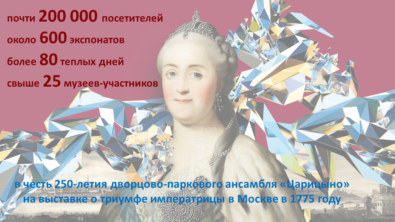 В память об этих юбилейных событиях в апреле 2025 года в музее стартовала выставка "1775. Триумф Екатерины II. Московский год императрицы", которая как раз рассказывала о важных вехах 333 дней, в которые уместились и праздники, и работа, и дипломатические визиты, и покупка будущего Царицына. Флагманский проект музея завершился 17 августа: портреты, личные вещи, подарки и планы города, отражающие видение императрицы, покидают залы.