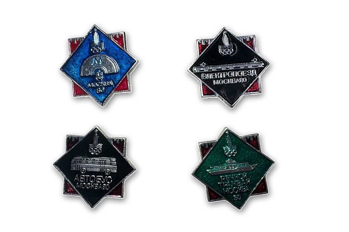 В фонде также появились значки "Олимпийский транспорт" с изображениями различных видов пассажирского транспорта, который участвовал в Олимпиаде-80. Это поезд метро, автобус, речной и рельсовый трамваи, обычное и маршрутное такси, троллейбус, электропоезд и другие.