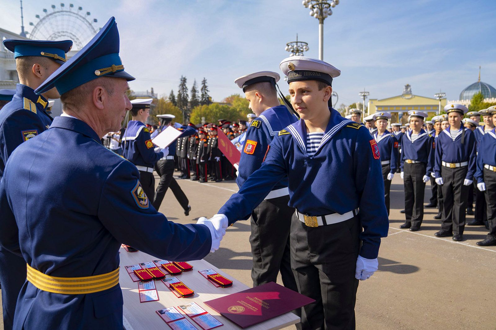 Торжественное посвящение в кадеты пройдет 27 сентября на Центральной аллее ВДНХ. В церемонии примут участие 700 воспитанников Первого московского кадетского корпуса. Об этом сообщили на сайте мэра и правительства Москвы.