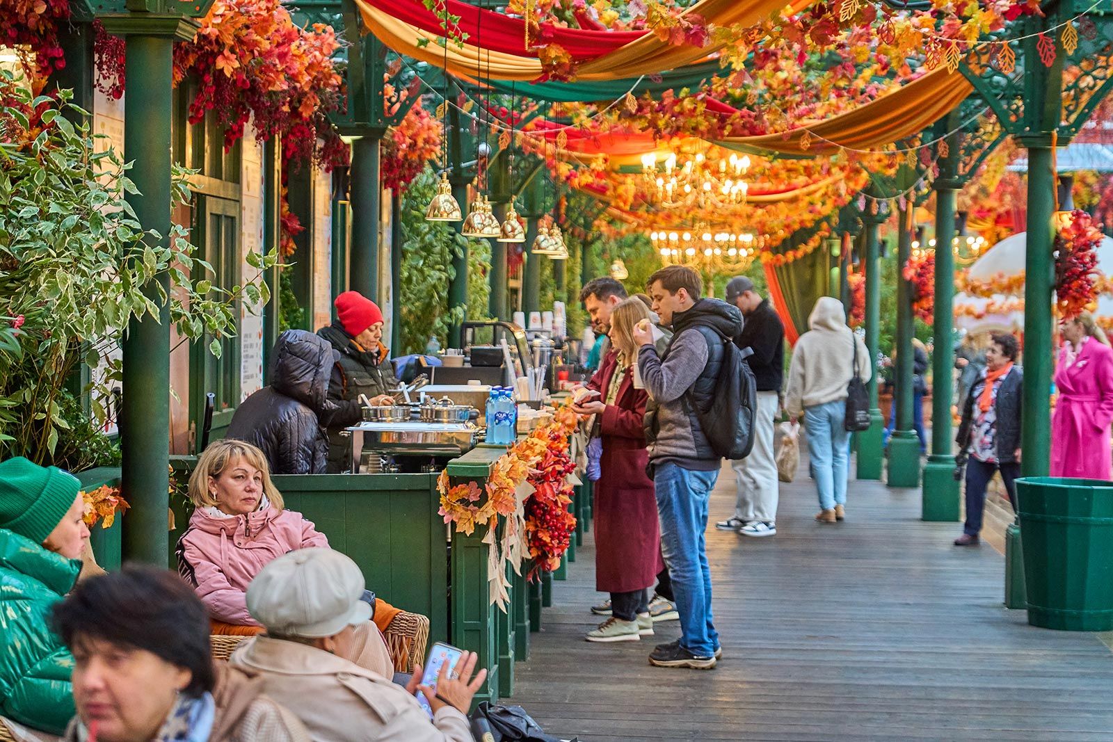 На "Манежной площади" продолжается гастрофестиваль "Московских сезонов". Для оформления площадки использовали около 2 тыс. тыкв и хризантем. Об этом сообщает АГН "Москва" со ссылкой на пресс-службу оргкомитета цикла городских уличных мероприятий "Московские сезоны".