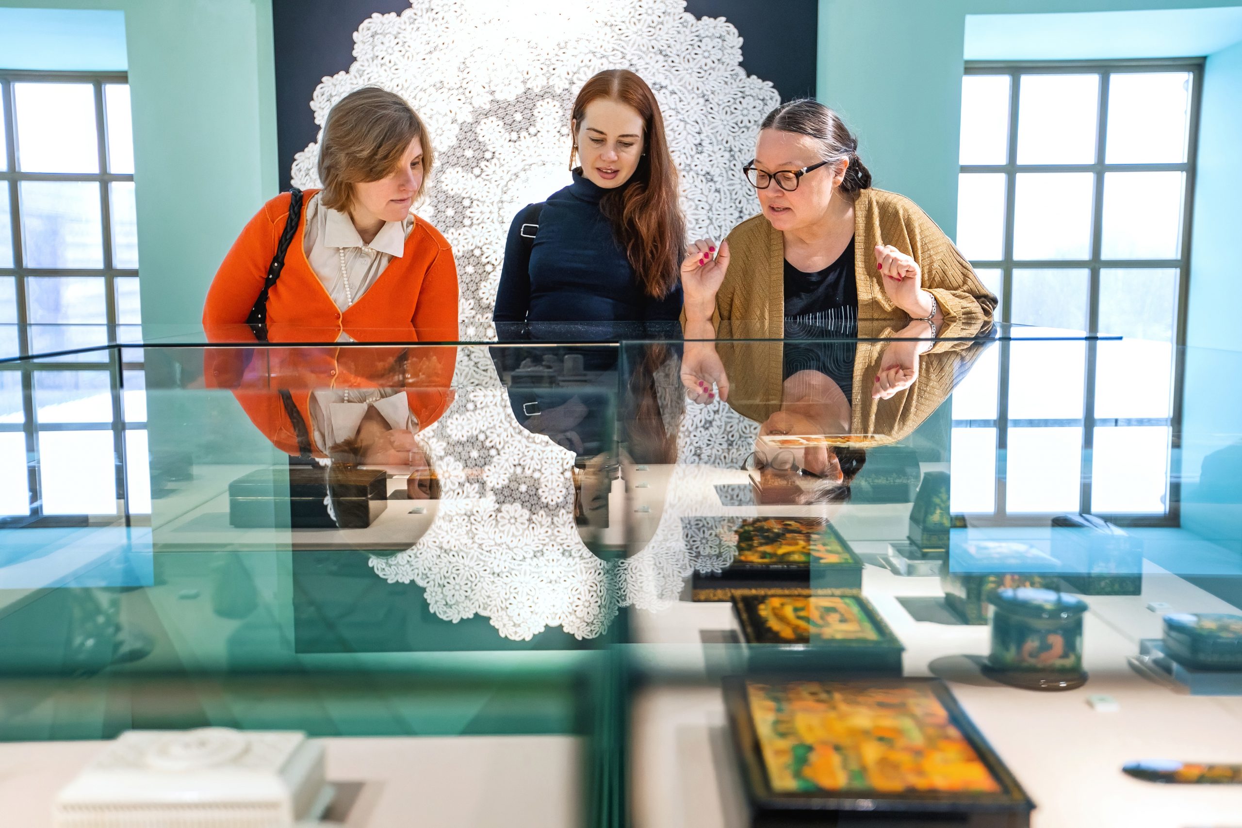 В усадьбе Люблино до 26 октября представлены скульптуры и фотографии известных артистов балета, танцевальные костюмы, аксессуары, книги и многое другое, а до февраля 2026 года в музее-заповеднике "Царицыно" — познакомиться с жостовской декоративной росписью.
