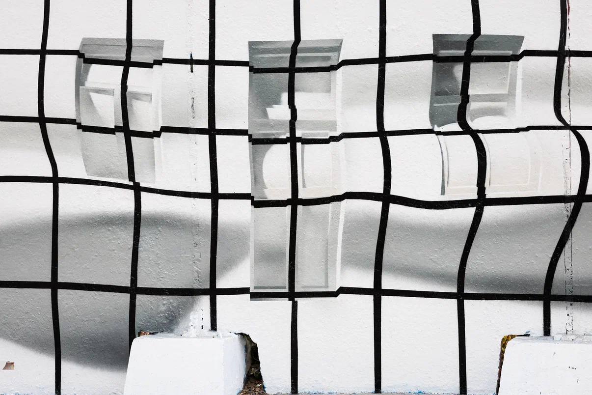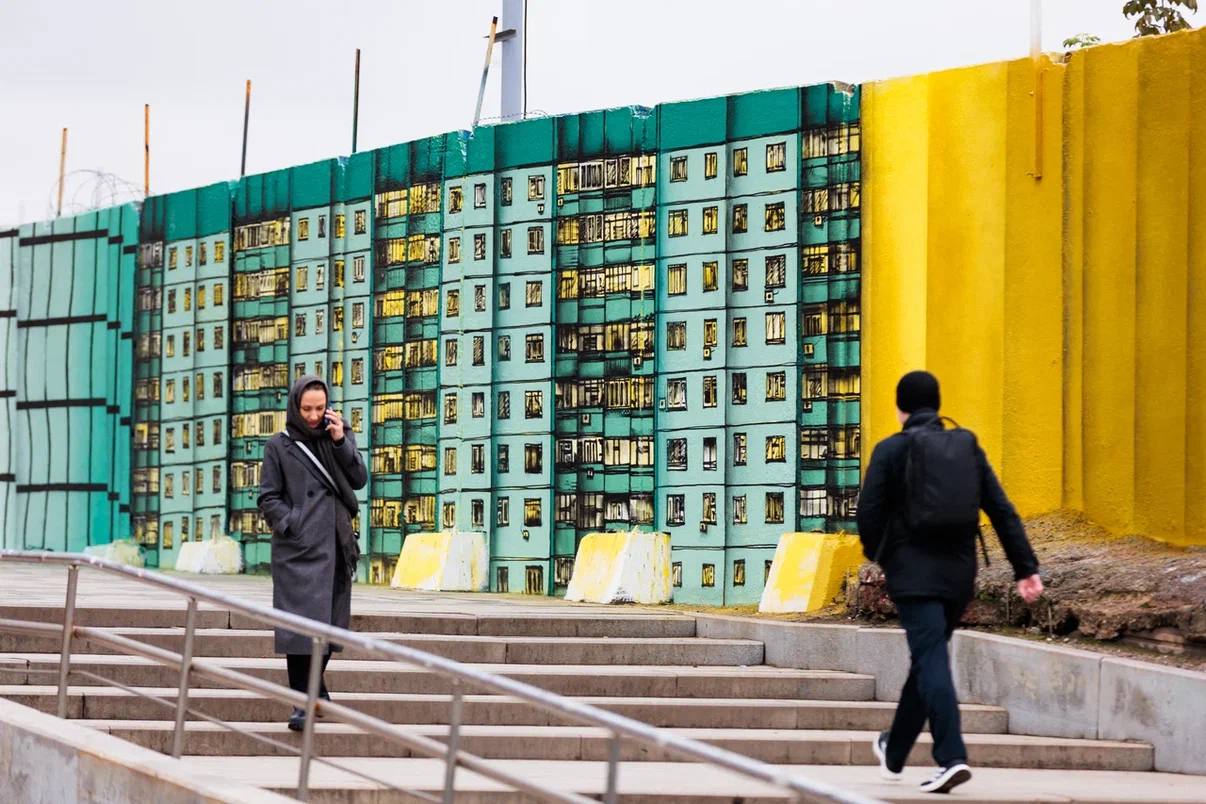 Dusto взял приевшийся глазу узор постсоветского панельного дома, обнажив хрупкую геометрию будней. Андрей Adno осмыслил слой как временной пласт, где эпохи то грубо перекрывают друг друга, то призрачно проступают сквозь время. А Shozy и вовсе искривил пространство, заключив его в систему клеток, внутри которых, словно воспоминание, возникают окошки и дверь в стиле московской архитектуры XIX века.