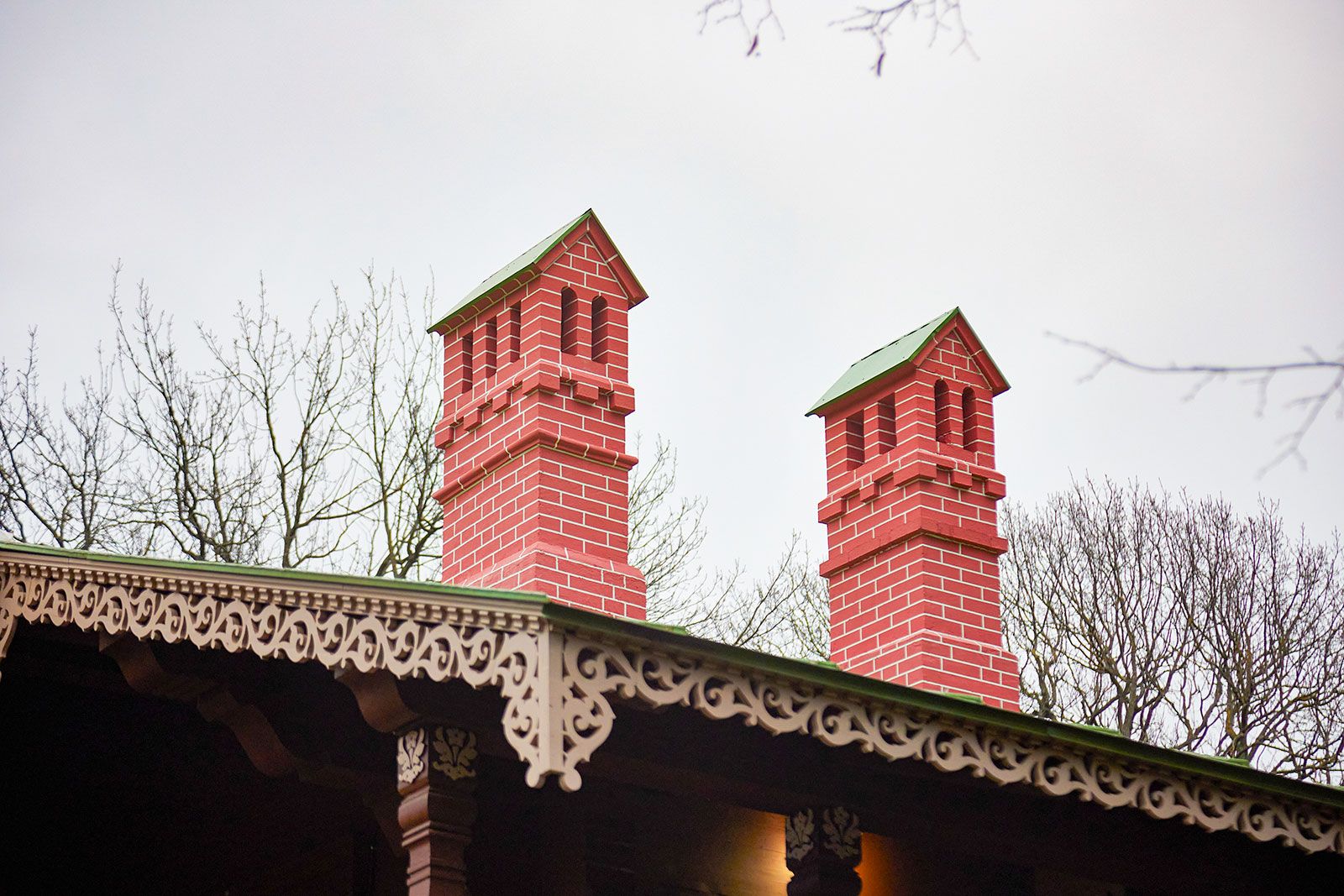Специалисты старались сохранить все детали, предусмотренные оригинальным проектом. Сначала привели в порядок отмостку и цоколь, затем укрепили каменный первый этаж, расписанный под кирпичную кладку.