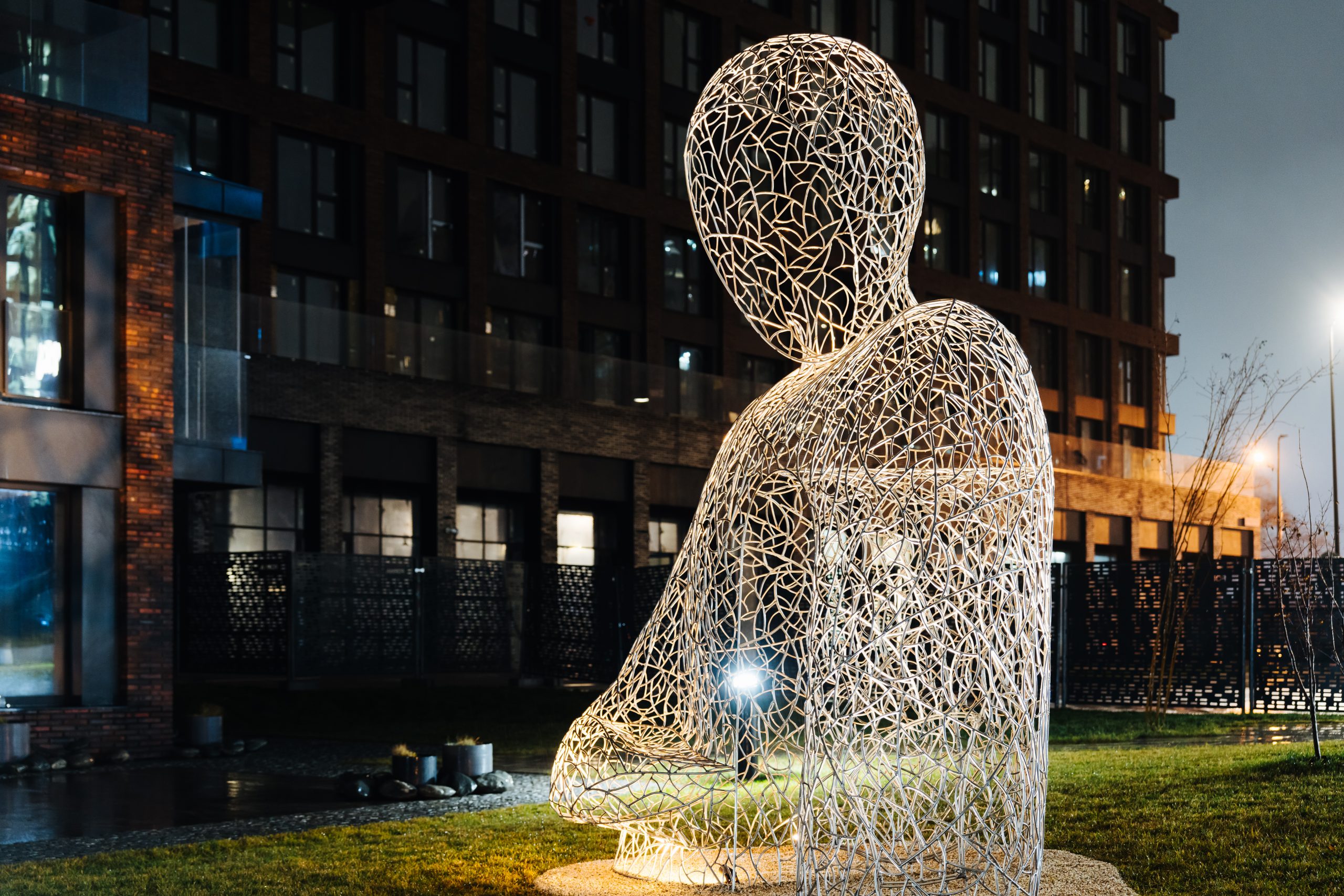 Кроме того, в рамках фестиваля "Здесь и Сейчас" в районе Южного речного порта Москвы на территории дизайн-пространства Portland появилась скульптура "Обнимать" российской художницы и перформера Александры Weld Queen. Объект раскрывает самобытность места: символизируя "материнское крыло" и родительский дом. Состоя из множества тонких графичных линий, работа дарит ощущение невесомости, а ее форма, напоминающая оберегающий жест, создает атмосферу, где горожане смогут побыть наедине с собой, почувствовать себя дома. Войдя в арку, зритель попадает в уникальное пространство, где границы между скульптурой и человеком стираются, ощущается поддержка и единение с окружающим миром. Образ арки воплощает внутренний центр и устойчивость.