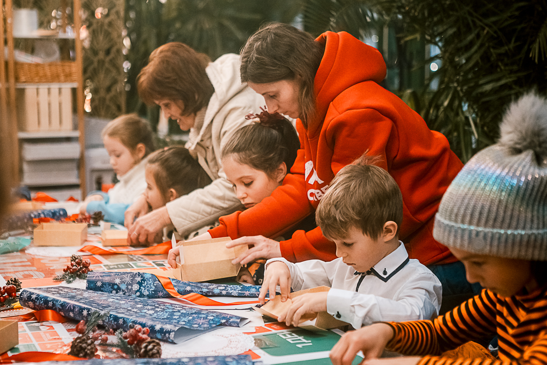 Павильоны "Фабрика подарков" проекта "Москва помогает" уже открылись на 31 площадке. Туда приносят сладости, игрушки, книги, наборы для творчества и канцелярские принадлежности, а для военнослужащих — теплые вещи и средства личной гигиены. Горожане также подписывают для них праздничные открытки.