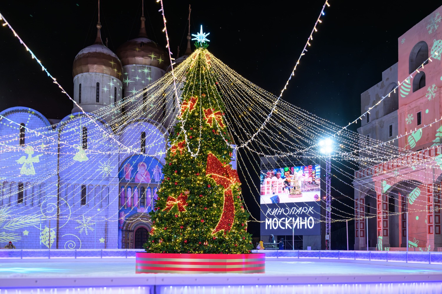 В декорациях "Соборная площадь" работает большой каток, есть прокат и теплые раздевалки. Любителям активного отдыха понравится тюбинговая горка с четырьмя спусками. Для творчества — мастер-классы по созданию открыток и кукол, а для развлечений — концерты, показы фильмов и спектакли в декорациях "Театра Гонзаги". Кроме того, можно принять участие в постановочных съемках сцен из любимых фильмов.