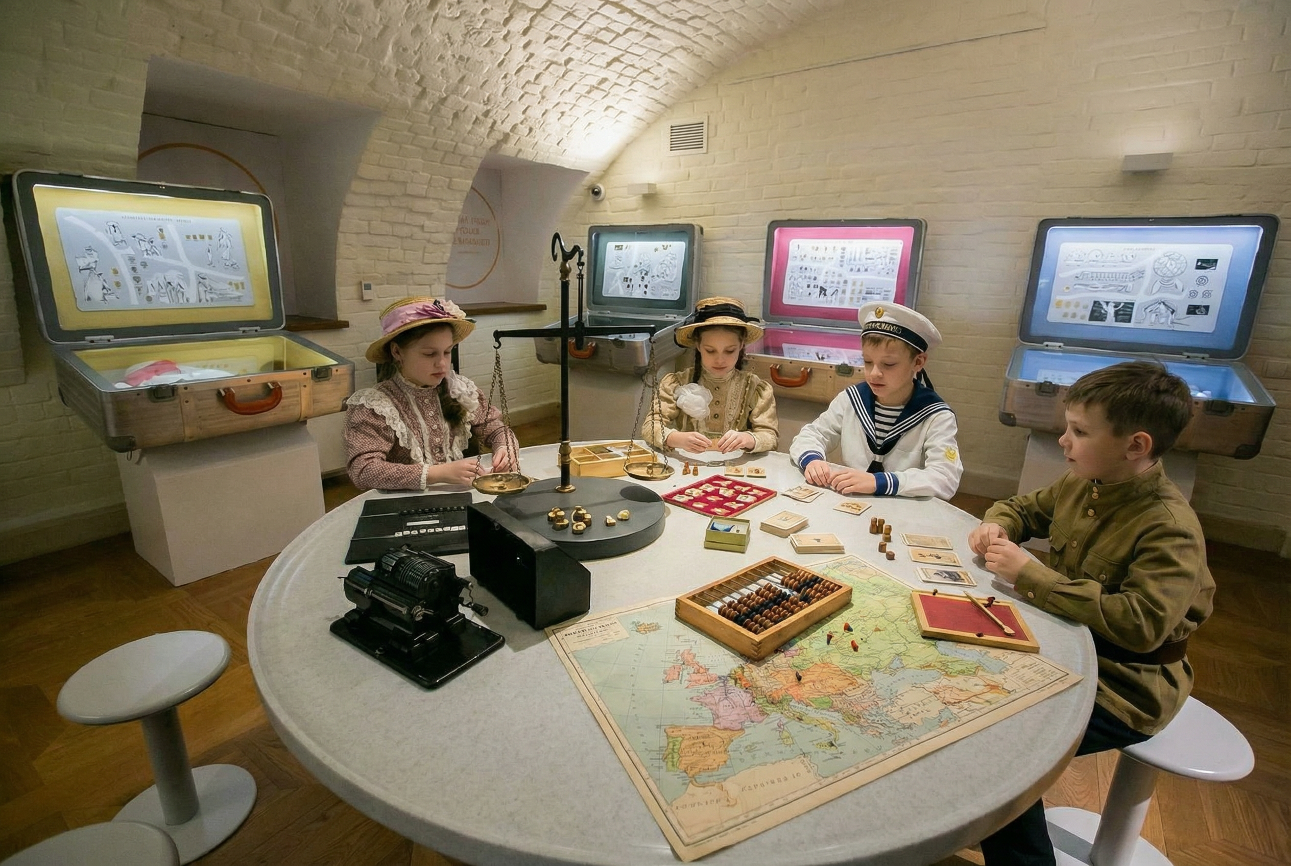 Экспозиция оборудована большим количеством интерактивных экспонатов: благодаря тактильным моделям посетители смогут рассмотреть и сравнить деньги разных эпох, освоить взвешивание монет, научатся считать на счетах и арифмометре – все это сделает экскурсию не только познавательной, но и интерактивно насыщенной. Маленьких гостей ждут увлекательные финансовые задачки и обучающие этюды, которые позволят окунуться в атмосферу ушедших эпох: например, угадать, что общего у гвоздей и жемчуга, расплатиться по чеку в Елисеевском магазине в XIX веке, подобрать нужные деньги для покупки хлеба и сыра в древних Афинах.