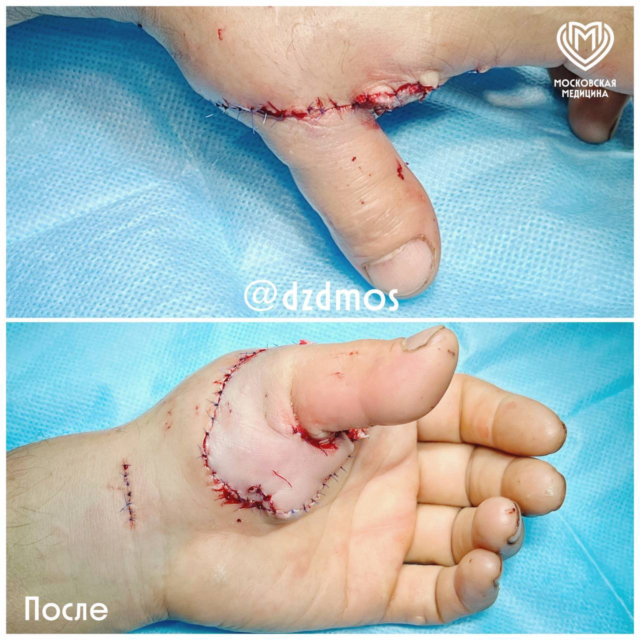 Хирурги провели сложную микрохирургическую операцию, которая длилась более 5 часов, и восстановили большой палец пациенту. Врачи провели комплексное хирургическое вмешательство: выполнили остеосинтез костей первого пальца, восстановили сгибательные и разгибательные сухожилия, осуществили шов нервов, а также трёх тыльных вен и обеих пальцевых артерий.