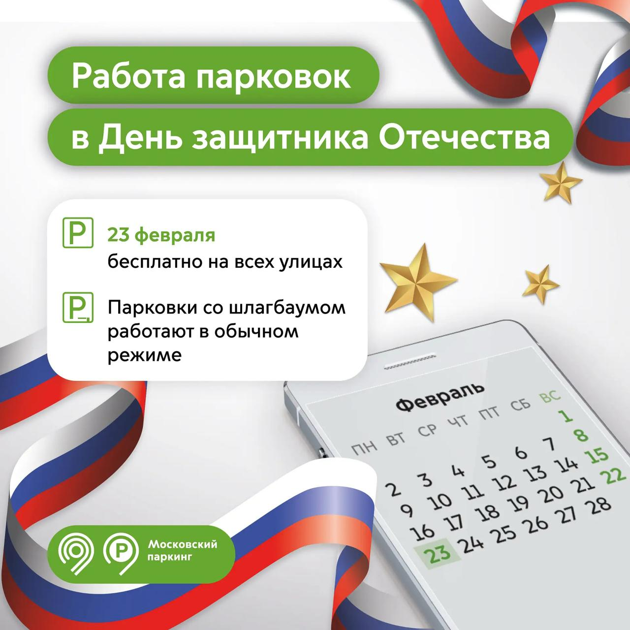 Парковка на всех улицах Москвы будет бесплатной 23 февраля в честь Дня защитника Отечества . Об этом сообщил Сергей Собянин.