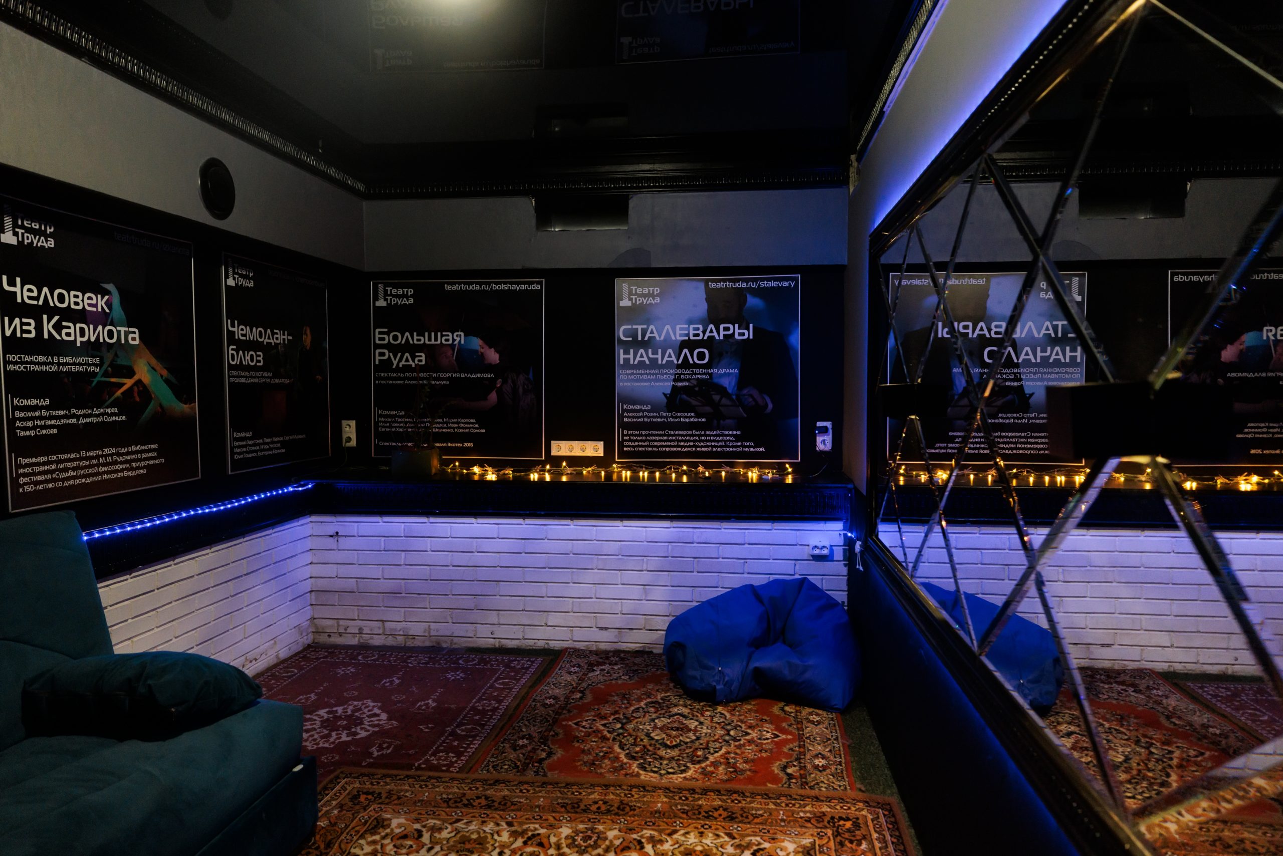 Первая премьера состоялась в новом помещении Театра Труда. Площадка независимого театра расположена недалеко от станции метро "Марьина Роща". Современное пространство включает два комфортных зала, большую зрительскую зону, а также арт-галерею.