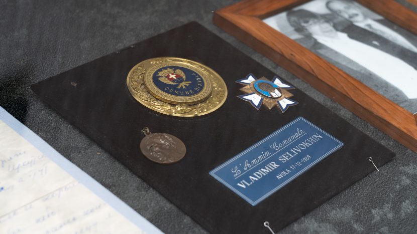 Во время церемонии открытия выставки профессор Московского архитектурного института, вдова музыканта Ирина Коробьина передала в фонды Музея музыки смокинг Владимира Селивохина.