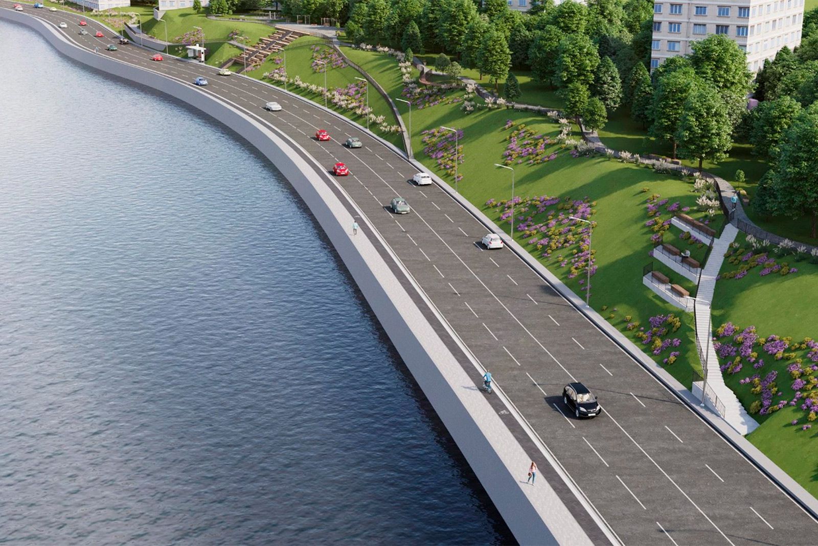 Планируется построить шесть километров дорог. Симоновская набережная будет продлена до Третьего транспортного кольца. Она будет иметь по две-три полосы в каждом направлении.