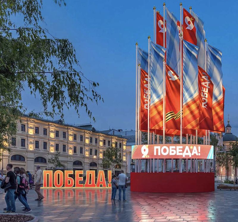 В этом году отмечается 81-я годовщина победы в Великой Отечественной войне. К этой знаменательной дате традиционно оформили город-герой Москву. Основными цветами выбрали красный — цвет знамени Победы.